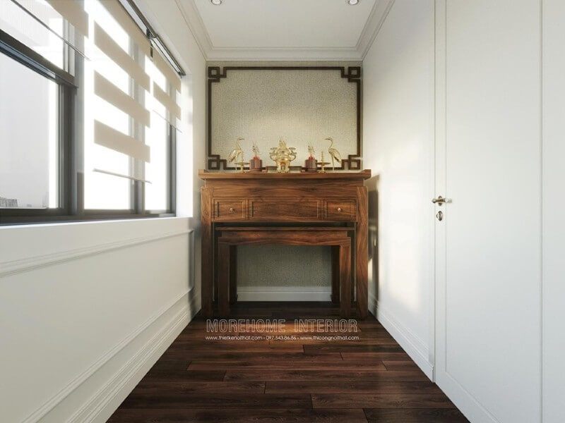 Nội thất phòng thờ chung cư được thiết kế để tạo ra một không gian sang trọng và thành kính.